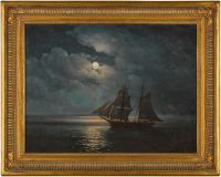 Ship in full sail in a moonlit night