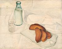 Натюрморт с бутылкой молока и ломтями хлеба
