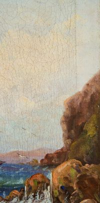 Кромки холста подведены, кракелюр; на обороте, вверху слева, небольшая холщовая заплата