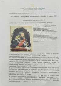 Внимание! Все материалы сайта и базы данных аукционных результатов ARTinvestment.RU, включая иллюстрированные справочные сведения о проданных на аукционах произведениях, предназначены для использования исключительно в информационных, научных, учебных и культурных целях в соответствии со ст. 1274 ГК РФ. Использование в коммерческих целях или с нарушением правил, установленных ГК РФ, не допускается. ARTinvestment.RU не отвечает за содержание материалов, предоставленных третьими лицами. В случае нарушения прав третьих лиц администрация сайта оставляет за собой право удалить их с сайта и из базы данных на основании обращения уполномоченного органа.